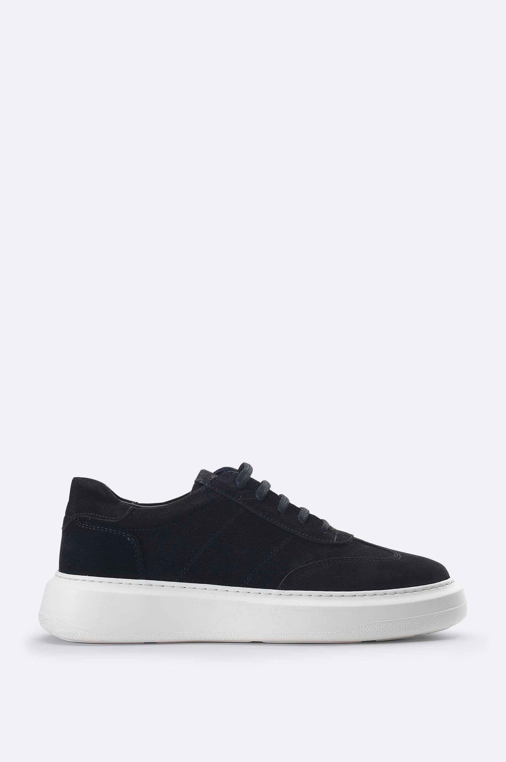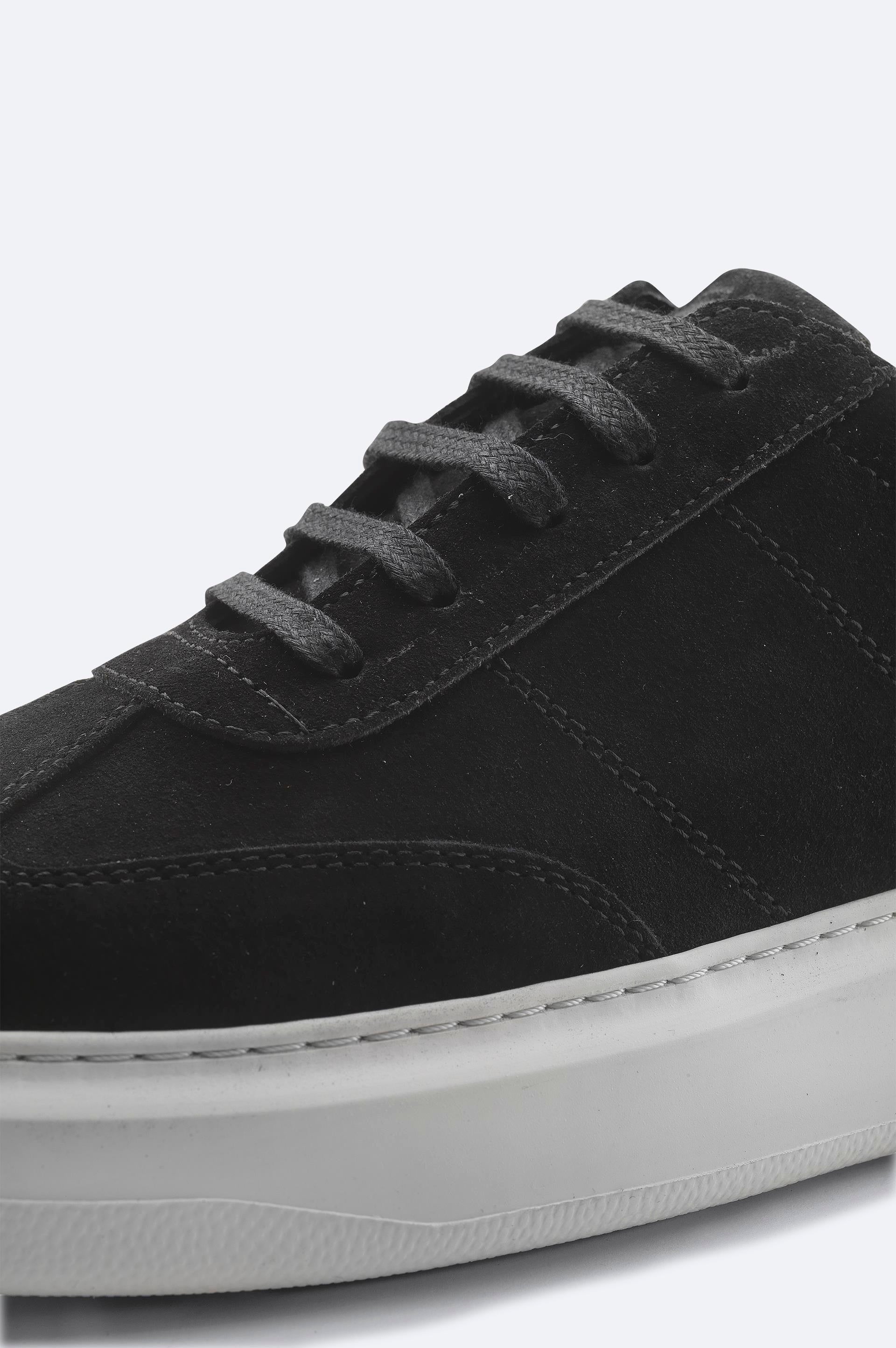 Black Suede Leather Lace-Up Sneakers - Flexible Sole