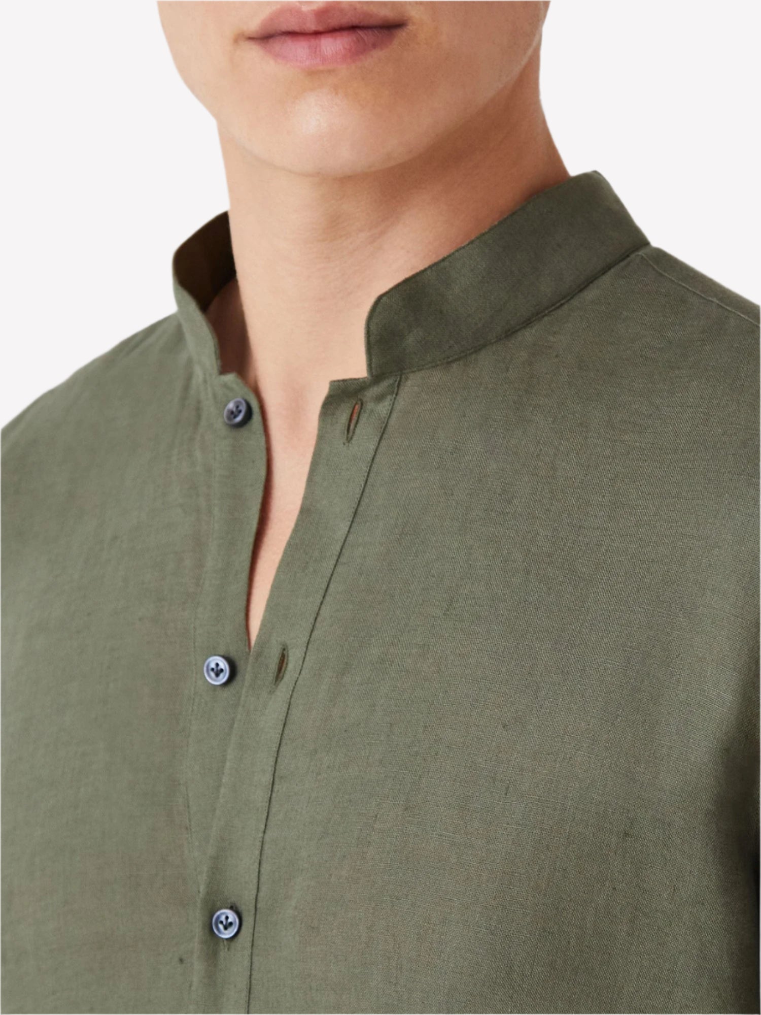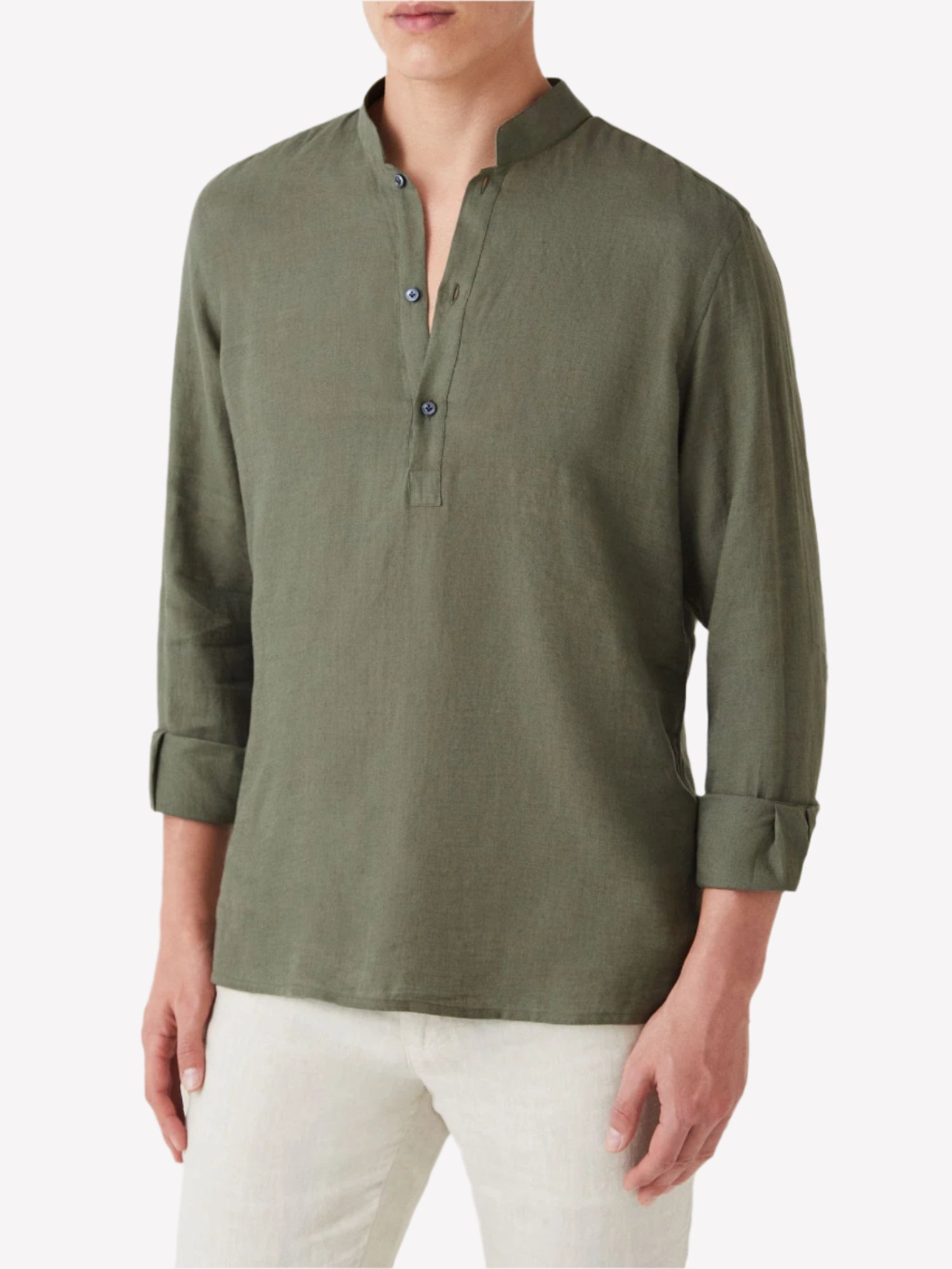 Green Linen Popover Shirt – Grandad Collar
