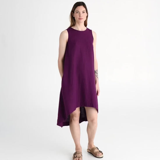 Purple Linen High-Low Dress – Sleeveless with Coconut Button