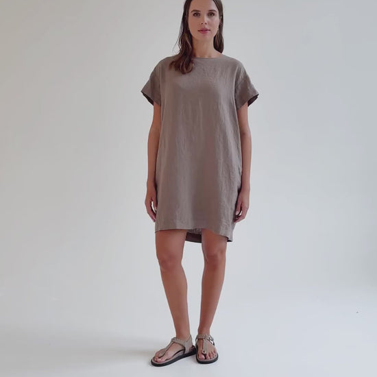 Taupe Linen Mini Dress – Relaxed Fit with Open Back
